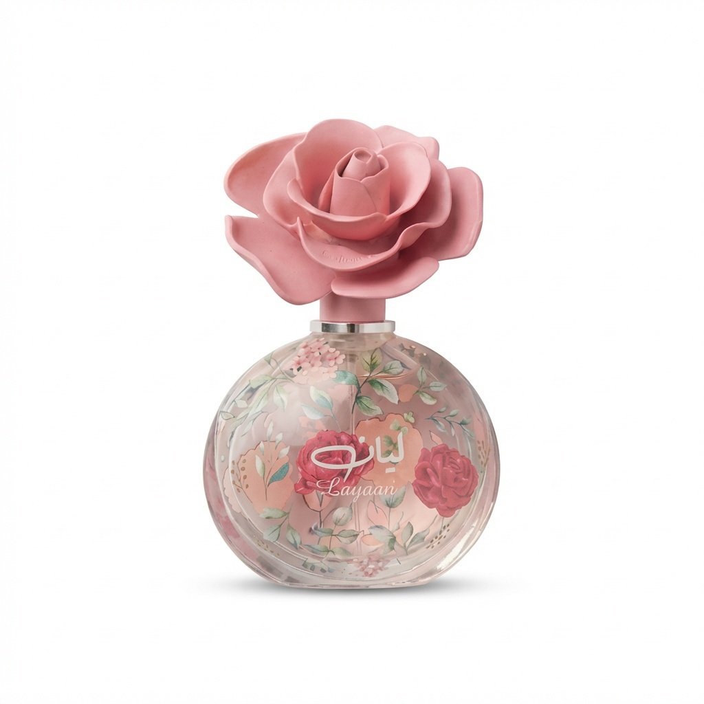 Lattafa Layaan, A bright fruity-floral fragrance, opens with pear and mandarin, then dries with soft white florals over a clean musky-woody base.